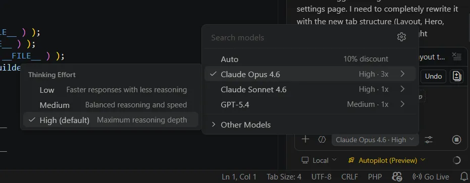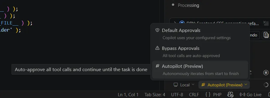 I decided to put Autopilot to the test in a real-world scenario inside VS Code, specifically on a custom WordPress plugin I’m currently developing.